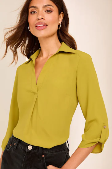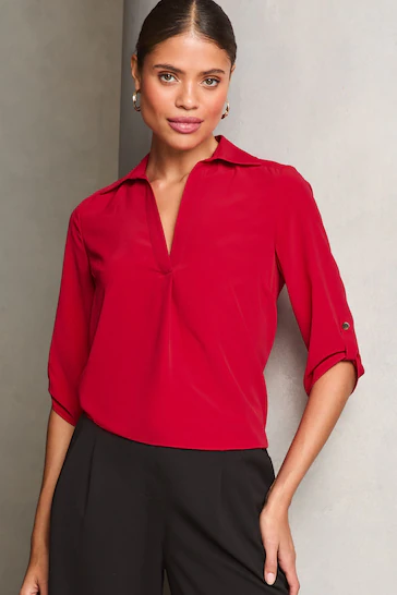 Relaxed fit smart blouse from Lipsy which is perfect for everyday wear. Featuring: Notch V neckline Collared style 3/4 sleeves with roll up and tab 100% Polyester.